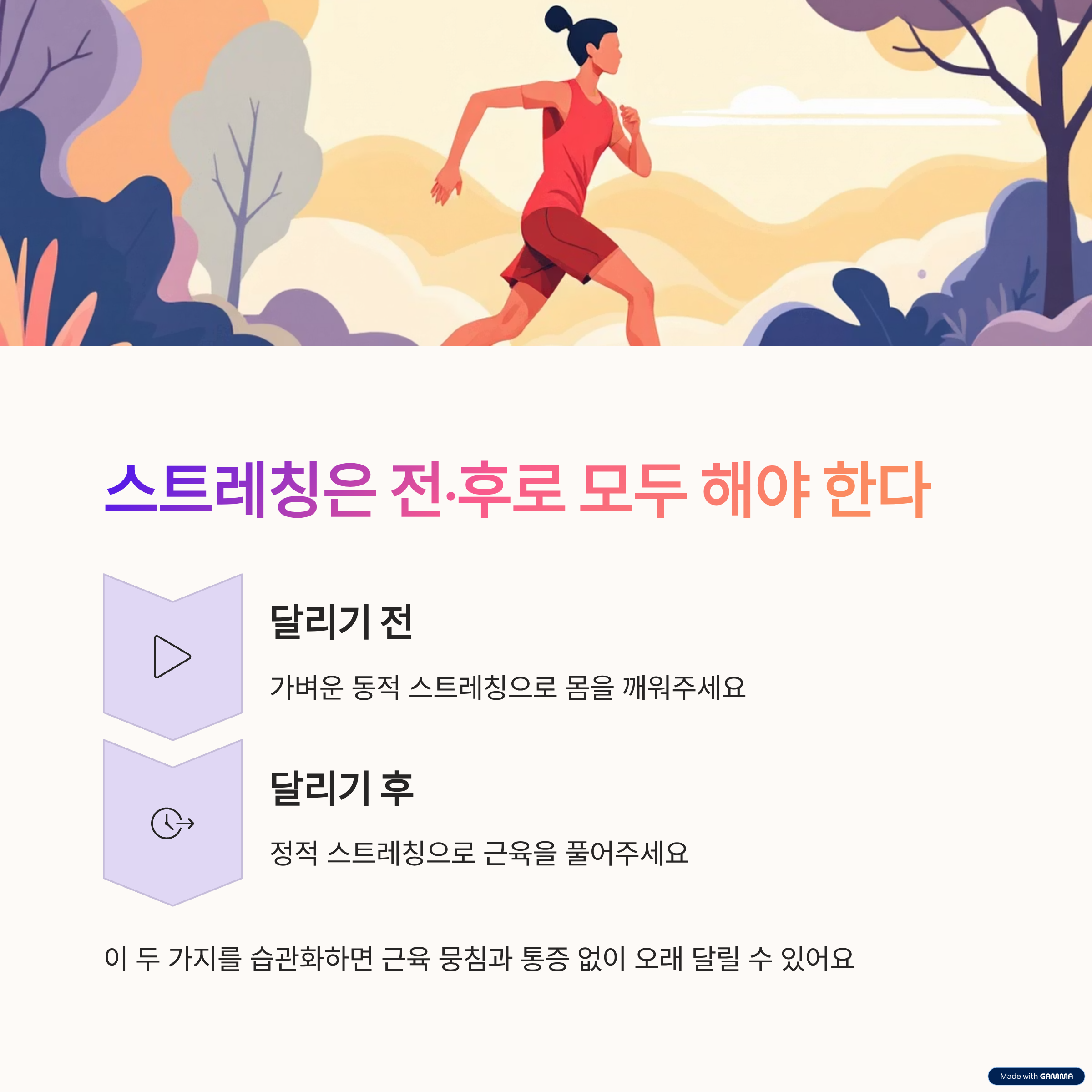 이 두 가지를 습관화하면 근육 뭉침과 통증 없이 오래 달릴 수 있어요.